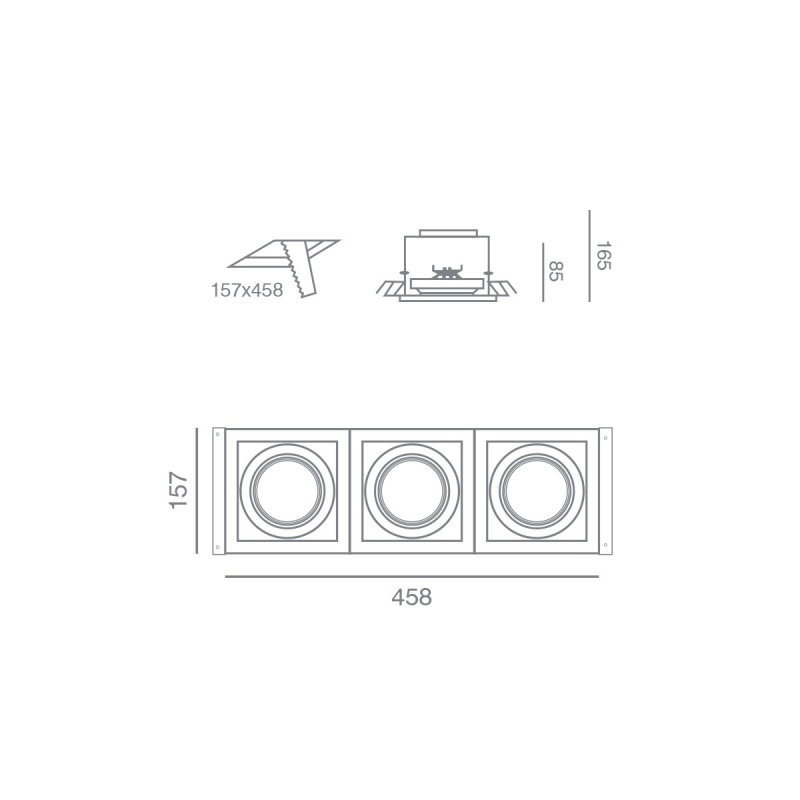 Το Trimless 3 LED111 12V είναι ένα χωνευτό φωτιστικό οροφής χωρίς εξωτερικό πλαίσιο, κατάλληλο για λαμπτήρες LED AR111 G53, 12V AC/DC. Κατασκευασμένο από αλουμίνιο και χάλυβα. Με διπλή περιστροφή κατακόρυφη 30° και κάθετη 30°, με αποσπώμενη του θήκη του λαμπτήρα (εσωτερικό στεφάνι) για εναλλαγή λαμπτήρα στο ίδιο φωτιστικό. Διαστάσεις: 157 x 458 mm H:165 mm. Κοπή οπής: 157 x 458 mm. Κατάλληλο για επαγγελματικούς χώρους και οικίες.