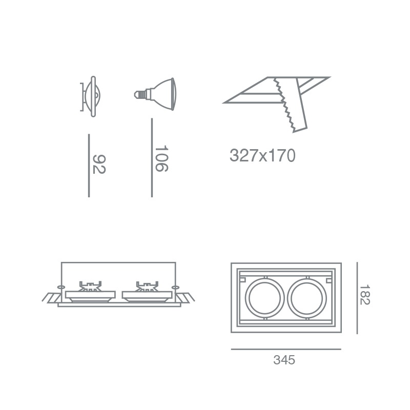 Διαστάσεις 182 x 345 mm H: 92 mm. Κοπή οπής: 327 x 170 mm