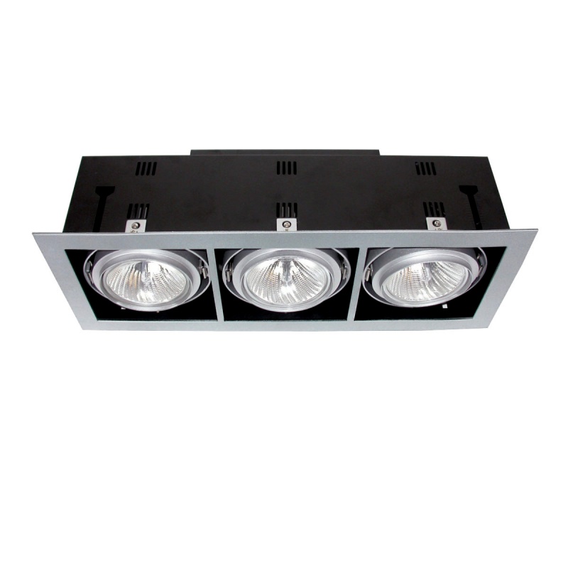 Το Standard Easy AK4033 είναι ένα χωνευτό φωτιστικό οροφής, κατασκευασμένο από αλουμίνιο και χάλυβα, βαμμένo ηλεκτροστατικάλευκού – ασημί – μαύρου χρώματος. Με διπλή περιστροφή κατακόρυφη 30° και κάθετη 30°, με αποσπώμενη του θήκη του λαμπτήρα (εσωτερικό στεφάνι) για εναλλαγή λαμπτήρα στο ίδιο φωτιστικό. Κατάλληλο για λαμπτήρες E27  LED PAR30 LAMPS, HALOGEN PAR30 LAMPS. Διαστάσεις: 195 x 500 mm  H: 130 mm. Κοπή οπής: 178 χ 464 mm. Ιδανικό για επαγγελματικούς χώρους και οικίες.