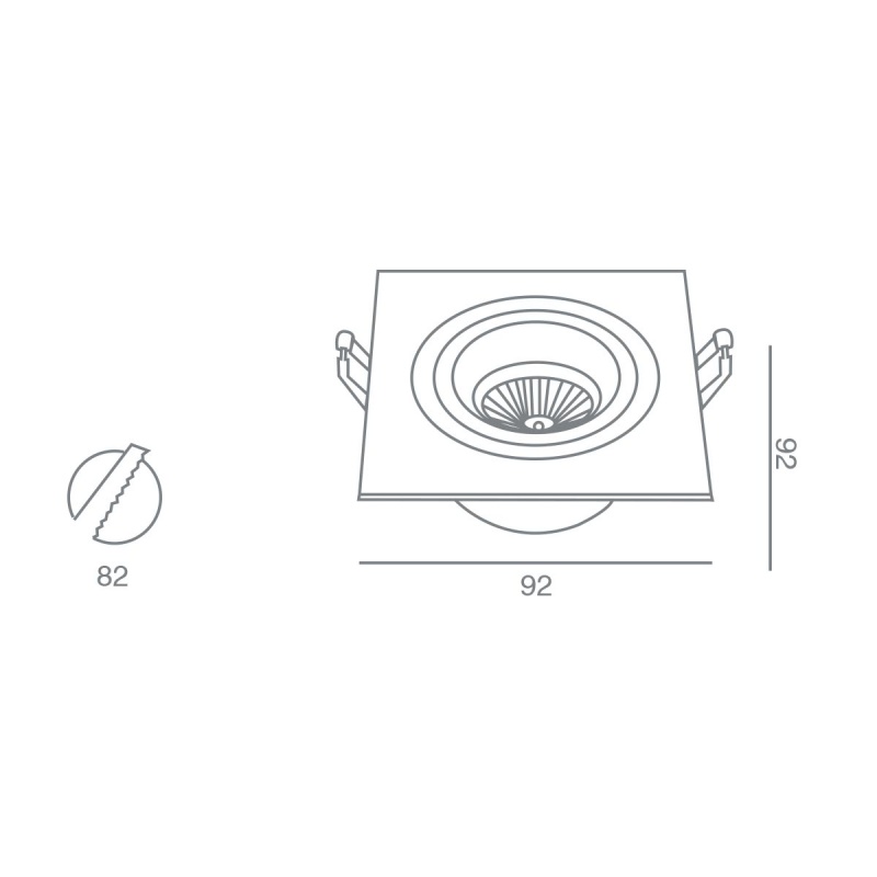Διαστάσεις 92 x 92 mm. Κοπή οπής: 82 mm