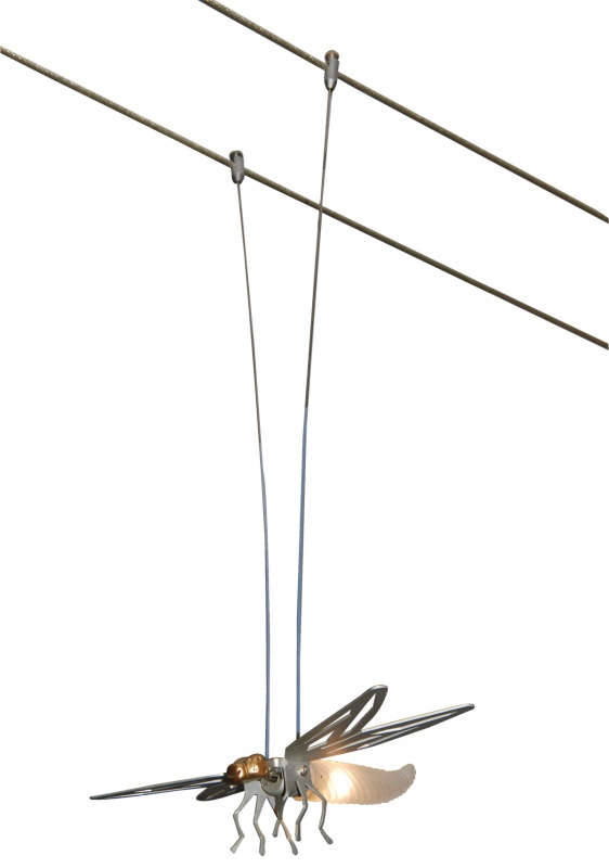 Το Mosquito AK1146 είναι φωτιστικό για καλωδιακό σύστημα (συρματόσχοινο) χαμηλής τάσης 12V LED ή αλογόνου, κατασκευασμένο από χαλκό, ορείχαλκο και γυαλί επιμεταλλωμένο με φινίρισμα inox - Nickel Mat και οπαλ το γυάλινο μέρος. Kατάλληλο για λαμπτήρες LED PIN G4 12V ή HALOGEN PIN G4. Με δυνατότητα κατακόρυφης κλήσης 30°. Διάσταση 215 x 460 mm. Ιδανικό για παιδικά δωμάτια και σημεία των χώρων που θέλουμε να δώσουμε χαρούμενες νότες. Ο λαμπτήρας αλογόνου περιλαμβάνεται.