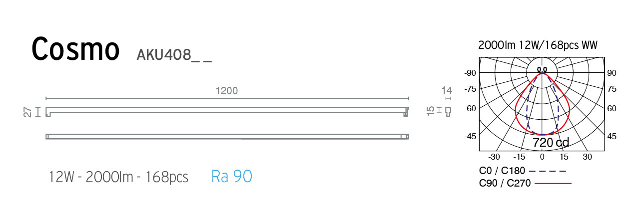 Το φωτιστικό είναι triac dimmable για αυξομείωση της φωτεινής ροής 10% - 100%. Tα μικρογραμμικά φωτιστικά Cosmo xάρη στο εξαιρετικά συμπαγές τους μέγεθος, τοποθετούμενα στην AKUR (χωνευτή ράγα) ή στην AKUH (βαθιά ράγα) κανένα μέρος τους δεν φαίνεται έξω από την επιφάνεια τους (πρόσωπο) δημιουργώντας ένα διακριτικό αποτέλεσμα που με την ομοιόμορφη εκπομπή φωτός παρέχουν τη καλύτερη λύση σε χώρους που είναι απαραίτητος ένας γενικός και διακριτικός φωτισμός.