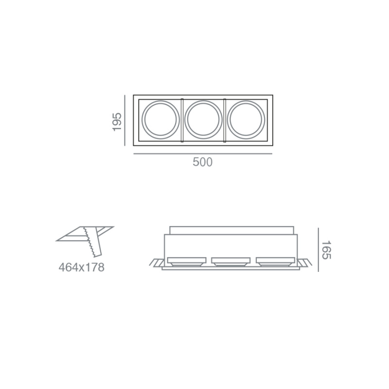 Διαστάσεις 195 x 500 mm   H: 165 mm    Κοπή οπής: 464 x 178 mm