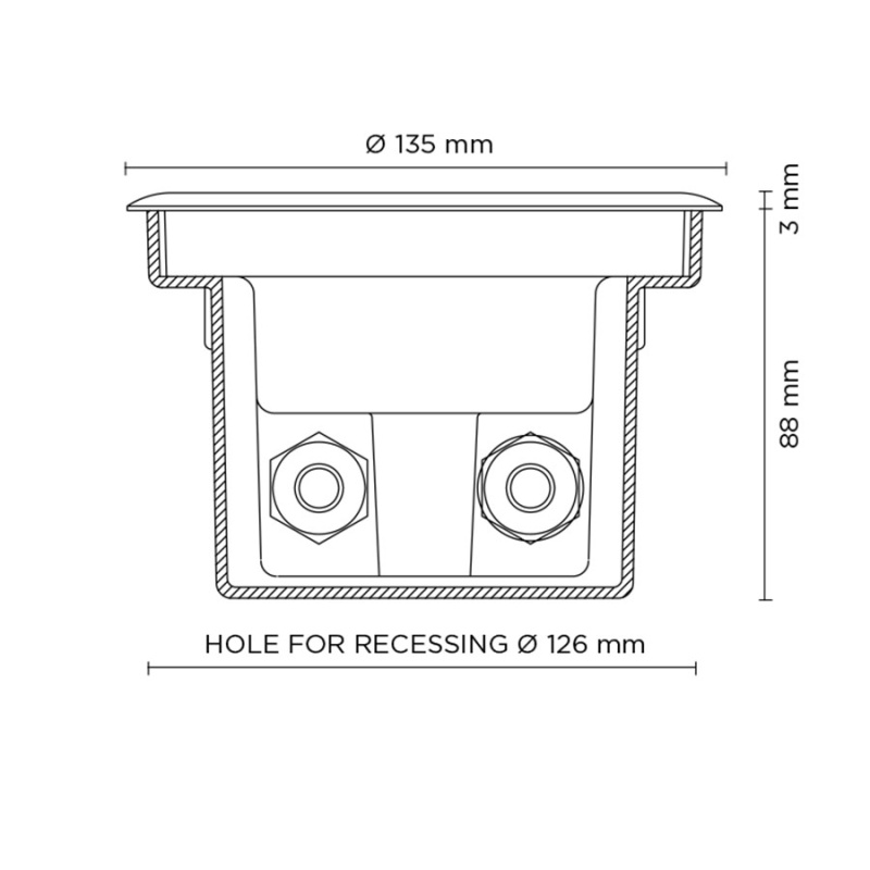 Στρογγυλό χωνευτό φωτιστικό εδάφους για τοποθέτηση σε εξωτερικούς χώρους, σώμα από χυτό αλουμίνιο με φωσφοχρωμίωση και πολυεστέρα με βαφή πούδρας και πλαίσιο AISI 304 από ανοξείδωτο χάλυβα, σκληρυμένο γυαλί ασφαλείας. GU10 LED. IP67.