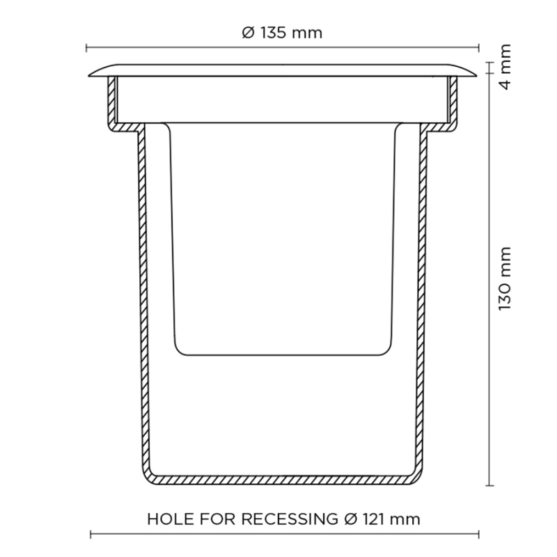 · Σώμα από ανοξείδωτο χάλυβα υψηλής αντοχής στη διάβρωση· Δαχτυλίδι από ανοξείδωτο ατσάλι AISI 316 – CD Range· Διαυγές (ή παγωμένο) σκληρυμένο γυαλί· Βίδες από ανοξείδωτο χάλυβα· ES50 35W max GU10 230V 50Hz ή LED GU10· Φλάντζα από καουτσούκ σιλικόνης· Μέγιστη αντίσταση στατικού βάρους 5000 Kg· Προστασία από κρούση IK09 (10 joule)· Στυπιοθλίπτη καλωδίου M20· Περιλαμβάνεται περίβλημα από πολυπροπυλένιο για εσοχή.