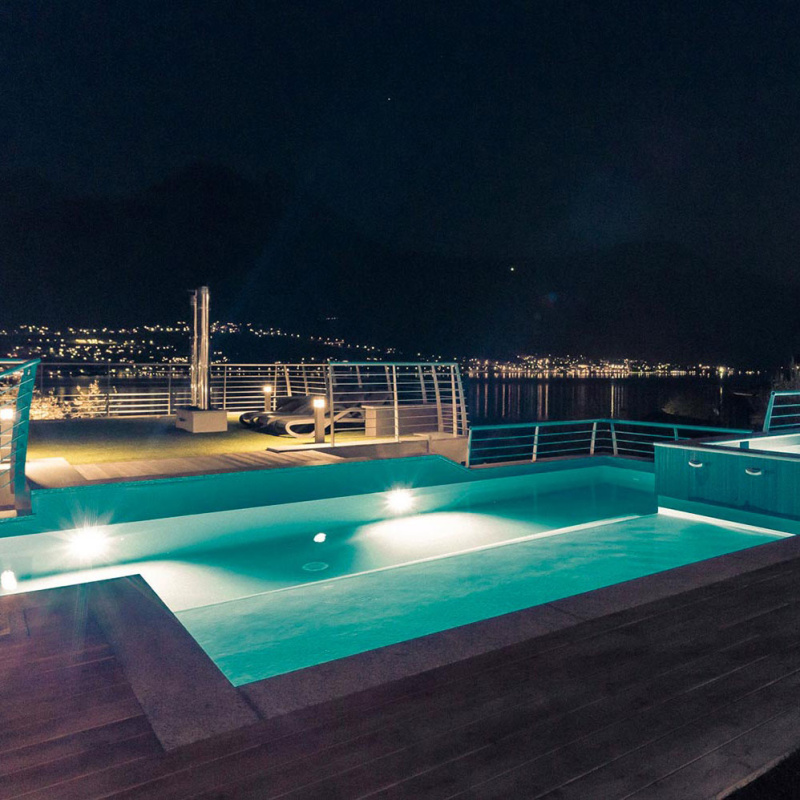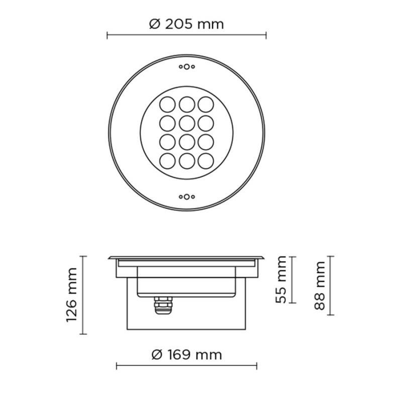 Aδιάβροχο φωτιστικό πισίνας ιταλικής κατασκευής, στρογγυλού σχήματος, για εσοχή στον τοίχο. Κατασκευασμένο εξ ολοκλήρου από ανοξείδωτο χάλυβα AISI 316L, περίβλημα από πολυπροπυλένιο για εσοχή. Απαιτείται τηλεχειριστήριο 24V, με 12 LED OSRAM. Βαθμός προστασίας IP68.