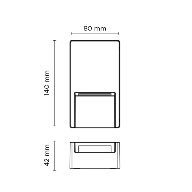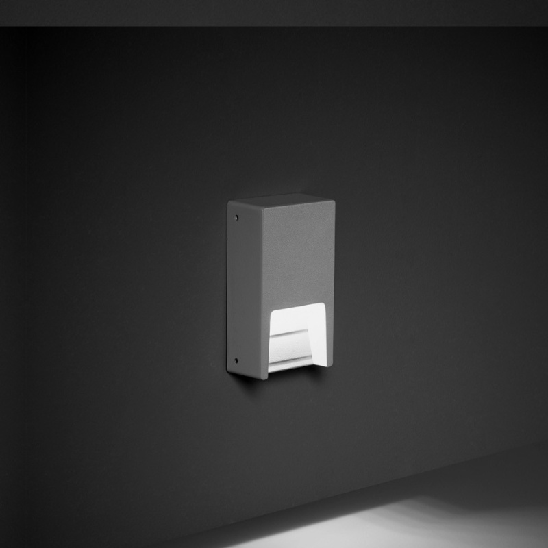 Ορθογώνιο επιτοίχιο φωτιστικό για εξωτερική εγκατάσταση σε τοίχο, χωρίς να απαιτείται εσοχή. Φωσφοροχρωματισμένο και πολυεστερικά βαμμένο με πούδρα, σώμα από χυτό αλουμίνιο, γυαλί ασφαλείας με σκλήρυνση, χυτό παρέμβυσμα σιλικόνης και βίδες από ανοξείδωτο χάλυβα. Ενσωματωμένος driver LED 220-240V 50-60Hz, με 6 LED μεσαίας ισχύος CREE XH-G. Βαθμός προστασίας IP65.