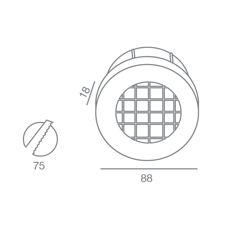 Διαστάσεις Ø 88 mm. Κοπή οπής: 75 mm