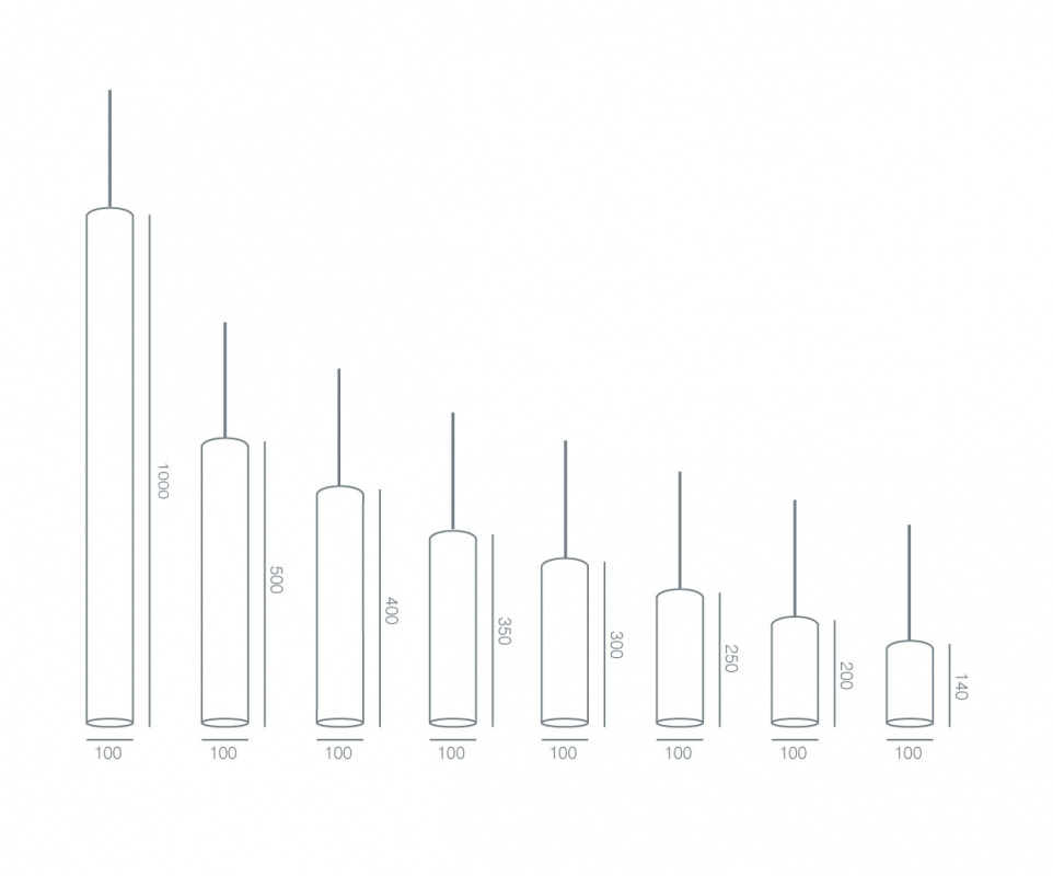 Διάσταση  Ø 100 x 140 mm - 200 mm - 250 mm - 300 mm - 350 mm για Ε27 PAR 30 και  Ø 100 x 400 mm - 500 mm - 1000 mm για λαμπτήρες LED E27