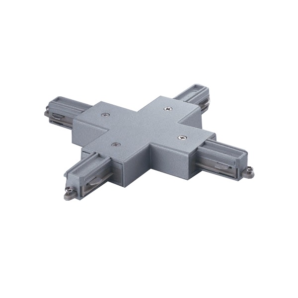 Ρευματοφόρος σύνδεσμος σταυρός για μονοφασική ράγα, κατασκευασμένος από πλαστικούς και χάλκινους αγωγούς. Με δυνατότητα τροφοδοσίας τάσης.