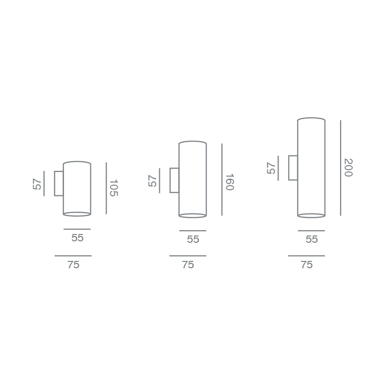 Ø 55 x 105 mm up or down, Ø 55 x 160 mm up - down και Ø 55 x 200 mm up - down