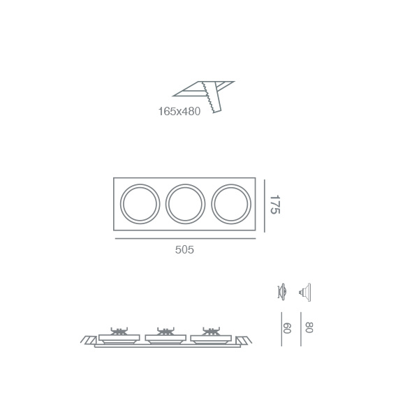 505 x 175 mm H: 60-80 mm Κοπή οπής: 480 x 165 mm