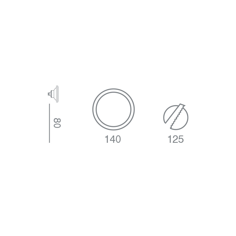 Διαστάσεις 140 mm  H: 80 mm Κοπή οπής: 125 mm