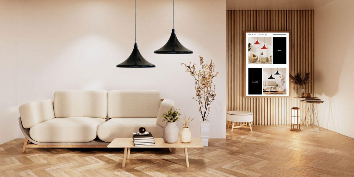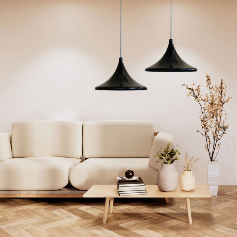 Φωτισμός και διακόσμηση σαλονιού με το κρεμαστό μοντέρνο μαύρο φωτιστικό Stork.
